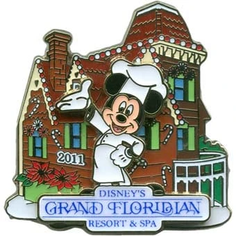 This limited release pin features Mickey Mouse with the gingerbread house found at Disney’s Grand Floridian Resort & Spa.