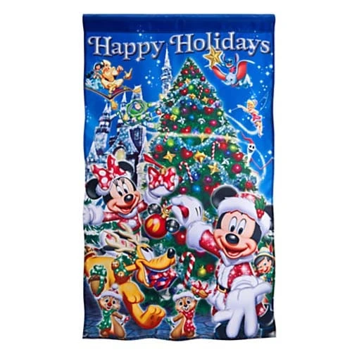 Strike your colors for the season with this festive holiday flag featuring Mickey, Minnie, Tinker Bell and host of Fantasyland friends. Guests will know the party is at your place!
