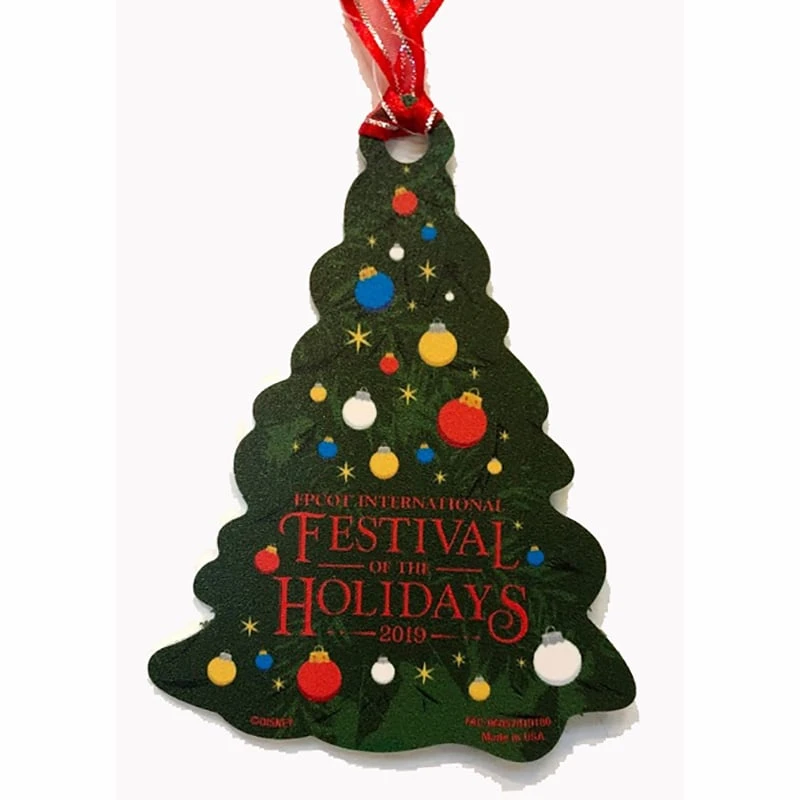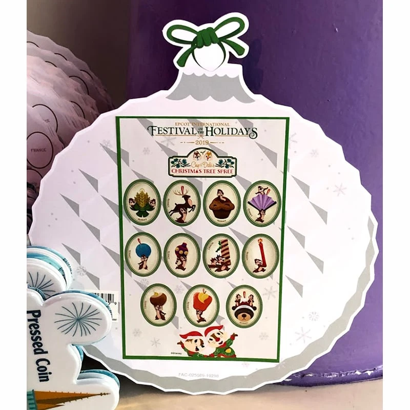 Trim your tree with this festival ornament from Epcot’s International Festival of the Holidays 2019. This special ornament was a scavenger hunt prize for Chip and Dale’s Christmas Tree Spree in World Showcase, and comes with the unused map and sticker set!