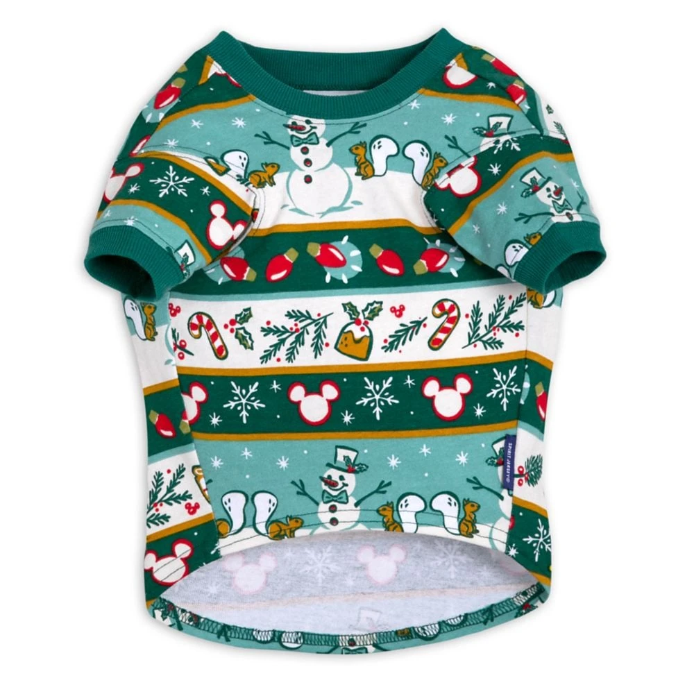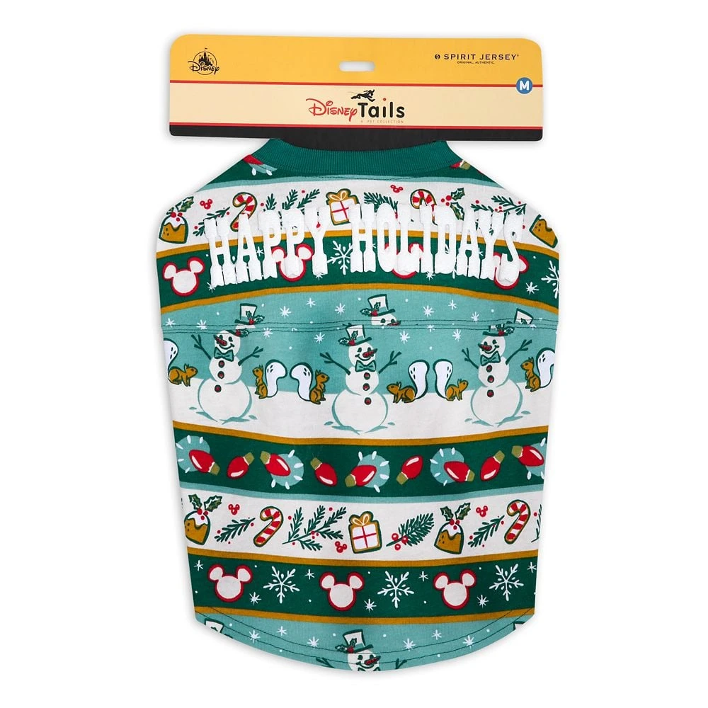 Bark the herald angels sing as your pet gets fashionably festive in this Spirit Jersey with its ”Happy Holidays” messaging! Mickey icons, snowmen, and holiday lights are featured in the allover print of this cozy cotton outfit.