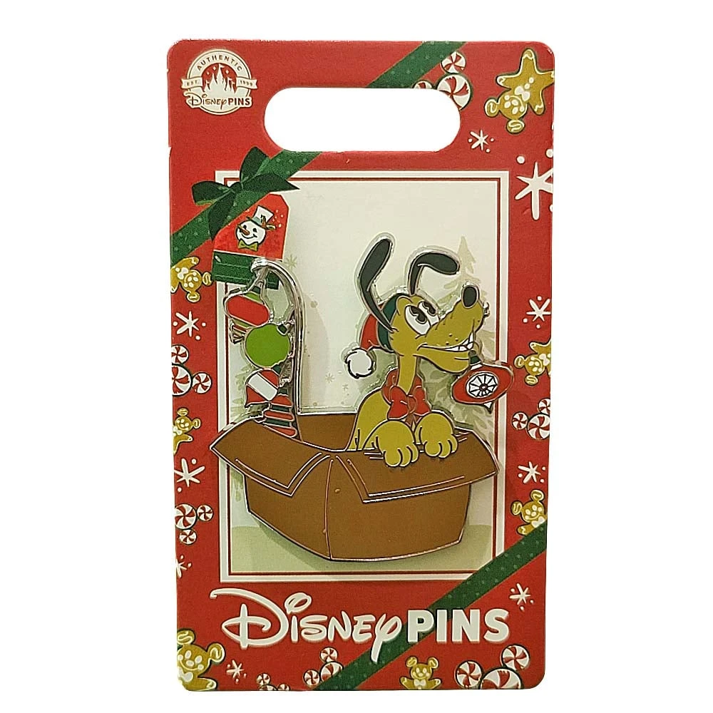 Pluto bring the holiday ornaments on this pin that’s part of the 2022 Mickey’s Vintage Christmas collection.