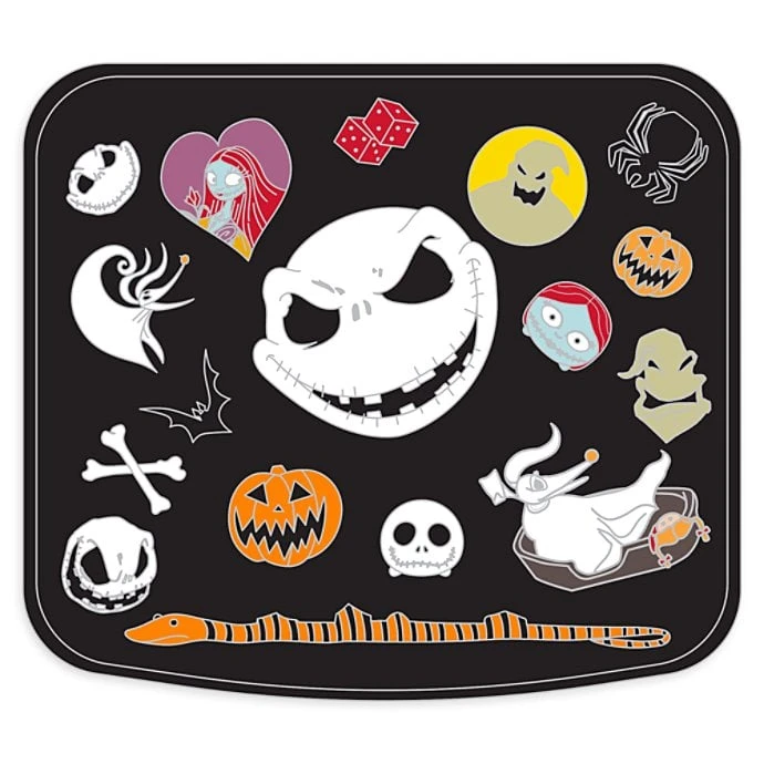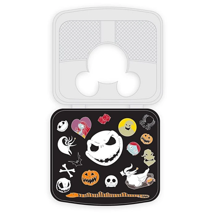 - Open to reveal pin icons including Jack, Sally, Oogie Boogie, Zero and more
