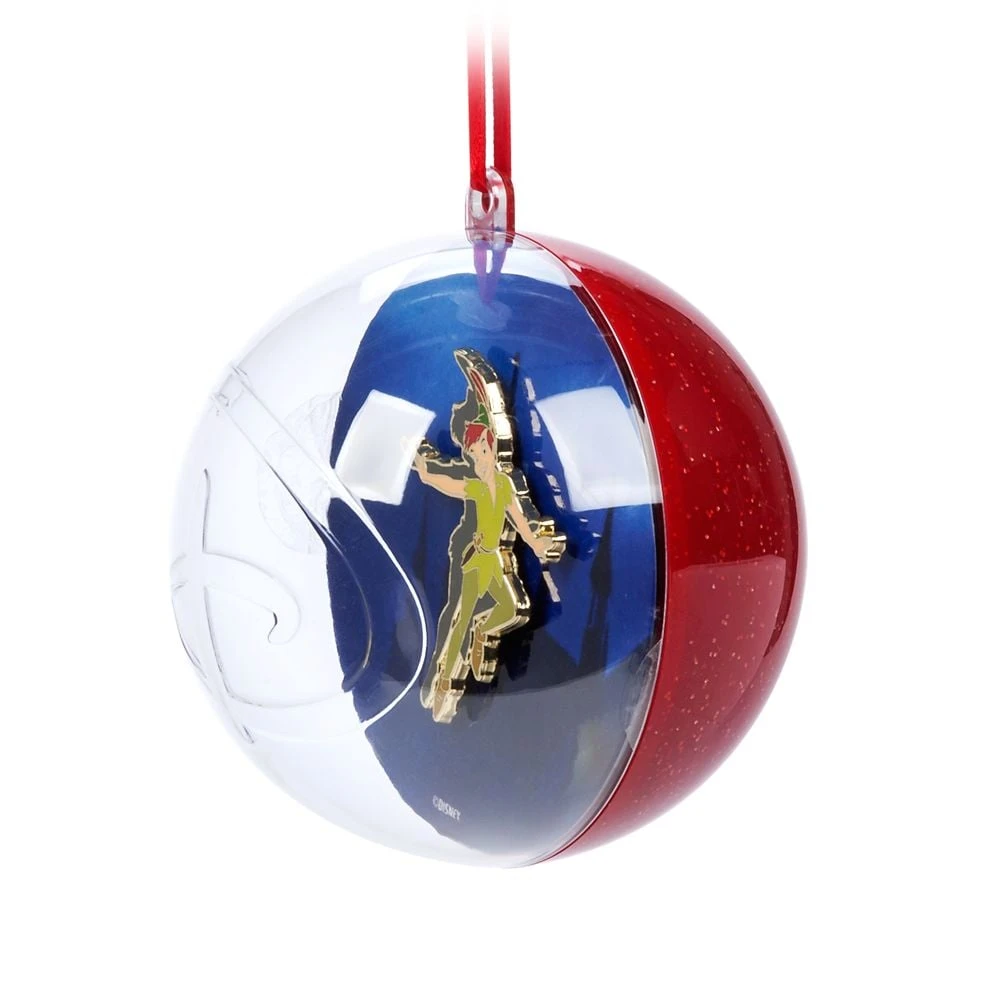 Think of a wonderful thought such as this glittering holiday ornament containing a cloisonné pin ready to hang and soon you’ll be soaring to Never Land with Peter Pan. Includes bonus mystery item. Mystery item could include a lanyard, a magnet, or a patch.