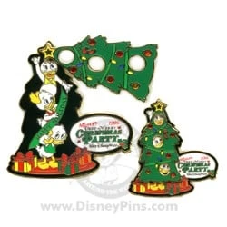Donald’s nephews Huey, Dewey and Louie are hiding in a Christmas tree in this Limited Edition pin commemorating Mickey’s Very Merry Christmas Party at the Magic Kingdom Park. This pin features a movement.