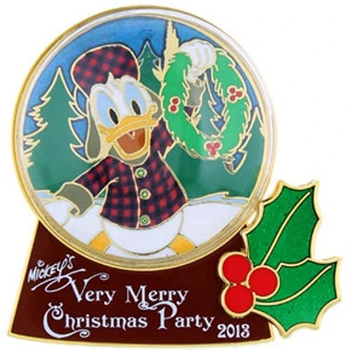 Celebrate the magic of the holiday season with your family at Mickey’s Very Merry Christmas Party, a special event held select nights in November and December at Magic Kingdom theme park! This 2013 Limited edition Mickey’s Very Merry Lumberjack Donald Duck snowglobe pin commemorates Mickey’s Very Merry Christmas Party 2013. Designed by Alex Maher.