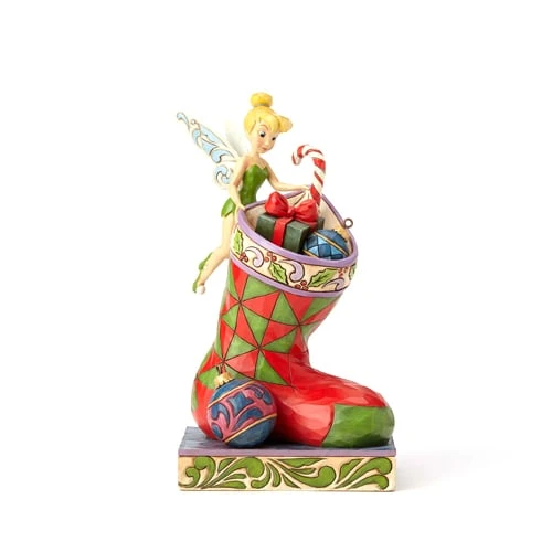 The Disney Traditions collection by Jim Shore combines the magic of Disney with the time-honored motifs of handcrafted folk art. This is a Disney Traditions by Jim Shore fine art figure depicting Tinker Bell with a Christmas stocking.