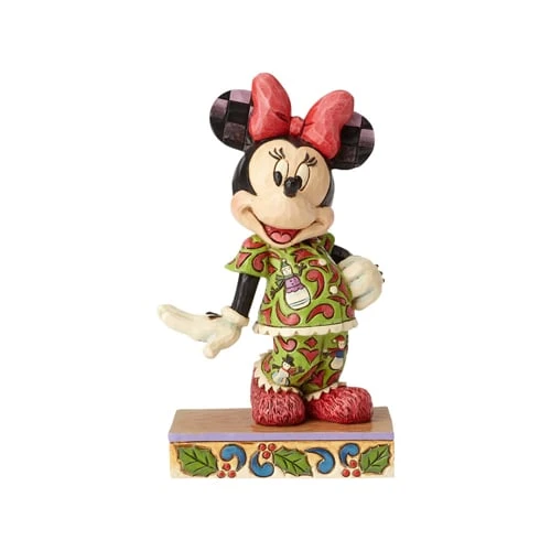 This is a Disney Traditions by Jim Shore fine art figure depicting Minnie in Christmas Pajamas.